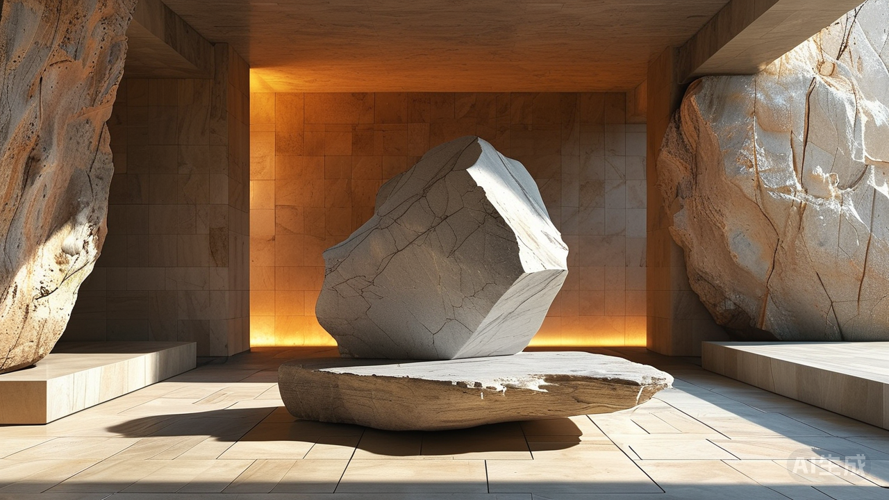 触感是视觉之后的无声对话。自然石材的肌理从不止步于平面,其表面微妙的起伏、晶体的闪烁与冰裂般的纹路,共同构成立体的触觉语言。仅仅依赖平面印刷的瓷砖,只完成了视觉的初阶模仿。而真正动人的仿石材作品,釉料之下是精心塑造的立体肌理,指腹抚过,能感受到如天然石面般粗砺与温润交织的微妙变化。光影流转其上,凹凸之间便有了岩石历经风霜的呼吸感。