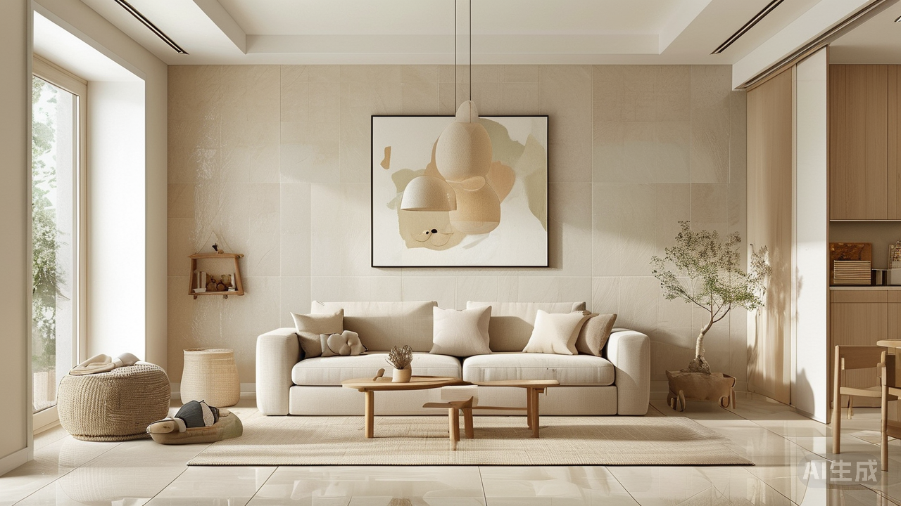 当瓷砖成为家的第二层皮肤,它的选择便超越了简单的装饰,悄然融入生活的脉搏。客厅里,瓷砖承载着访客的足迹与家人的笑语,选择需兼顾审美与实用。大尺寸、低亮度的柔光砖或哑光砖是稳妥之选,它们既能延伸空间的视觉宽度,又以温润的质感包容日常摩擦的痕迹。浅米、浅灰等中性色调,如同沉稳的画布,衬托家具与软装的灵动;若偏爱石材纹理,则需谨记:过度的花纹与高光易使日常浮尘无处遁形,清雅的肌理更能经得起岁月凝视。