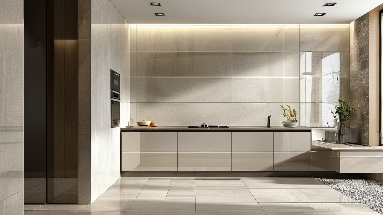 移步厨房,瓷砖便置身于烟火与油水的考验场。 墙面最怕沾染烹饪的印记,光滑亮面的釉面砖是最忠实的守护者,一抹即净的釉面犹如给厨房披上防水盔甲。地面则需更深的思虑,水渍与油污是不速之客,带细微凹凸纹理的哑光砖或仿古砖便显露出优势——它们粗糙的肌理如同地面无声的防滑链。浅色系依旧明智,污渍无处藏匿,清洁便成为举手之劳。别忘了墙面与橱柜交接处,一道防水性能卓越的美缝剂,是抵挡湿气渗透的细密封缄。