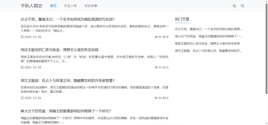 网站简介: 千秋人物志以生动的故事与深度的剖析,带您走近一个个有血有肉的历史生命。我们既是故事的讲述者,也是传奇的解码人,旨在为您提供理解历史与人性的一把钥匙。