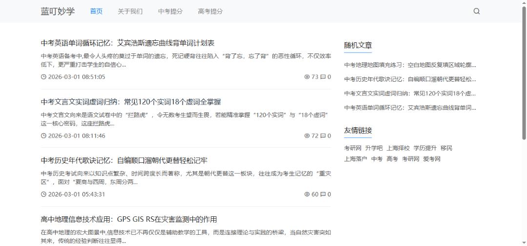 网站简介: 蓝叮妙学专注中高考全科辅导,直击考试痛点,提供精准提分技巧与课程解决方案。名师团队深耕考情,定制高效学习方法,助你快速突破瓶颈,轻松冲刺理想名校。立即加入,开启提分之旅!