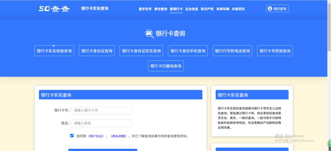 网站简介: 银行卡实名核验查询或者叫银行卡号实名认证核验查询,是指通过银行卡号、姓名来核验查询是否实名、真实、一致的查询。一般可用于付款转账前的收款账号核验、失信老赖财产线索核验等应用场景。