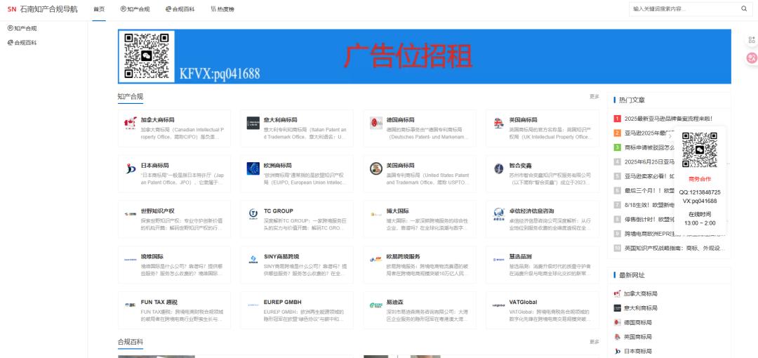 网站简介: 石南知识产权导航站,专注于知识产权,财税合规领域,精心整理全球200+优质知识产权及税收合规网站资源,涵盖专利、商标、版权等多个领域,助跨境外贸卖家高效获取权威信息,提升工作效率。