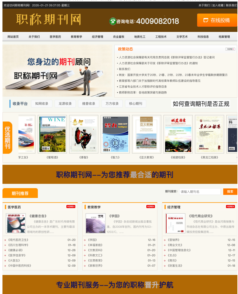 网站简介: 职称期刊网(www.zcqkw.com)是专注于职称晋升相关学术服务的一站式平台,核心为客户提供期刊发表、文稿审稿、专著出版全流程解决方案,助力科研人员、职场从业者顺利达成职称评审、成果转化需求。