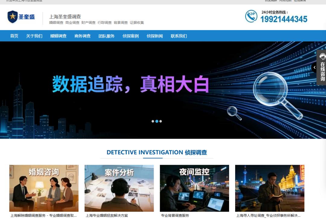 网站简介: 上海圣奎盛调查服务是深耕上海本土的合规调研服务平台,聚焦上海情感线索合规梳理、合法线索梳理、婚姻家事合规咨询、婚前背景合规梳理等核心需求,始终以法律为准绳,精准匹配上海本地人群的急难诉求。我们手握独步行业的专属资源网络 —— 从法律领域、政企协作单位到司法对接渠道,再到定制化专业通路,这份优势能帮您快速锁定关键信息,成为您破解情感、商业难题的核心底气。