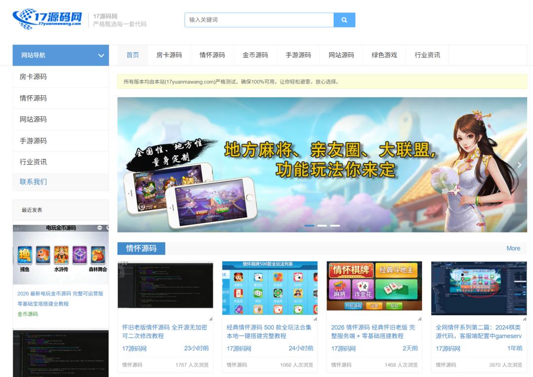 网站简介: 17源码网是一个专注于高质量源码分享和技术交流的专业平台,提供海量精品开源棋牌游戏源码、网站源码免费下载,涵盖房卡、金币、手游、情怀类源码,完整可二次开发,支持一键搭建部署。我们致力于为开发者提供经过严格测试的安全源码,杜绝劣质资源和虚假信息,确保用户获得最优质的技术支持和服务。