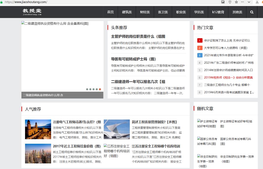 网站简介: 教授堂,为广大考友提供提供建筑类,财经类,医卫类,职业类,学历类等考试时间,考试大纲相关资讯信息,及考试试题,考试题库,考试资料等备考资料免费下载,是一个专业的自考职业考试信息资讯网站.