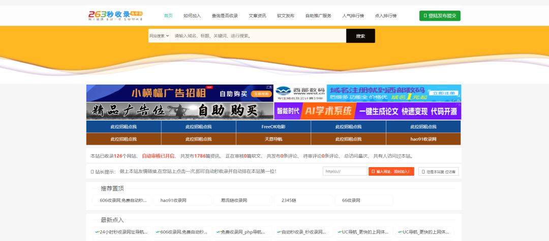 网站简介: 263秒收录,是一个专业的收录网站,提供秒收录网站导航服务自动收录优质网站、文章和导航链接,帮助用户快速找到所需资源,在GOSL,您可以轻松提交您的网站或文章,享受快速收录的便利。