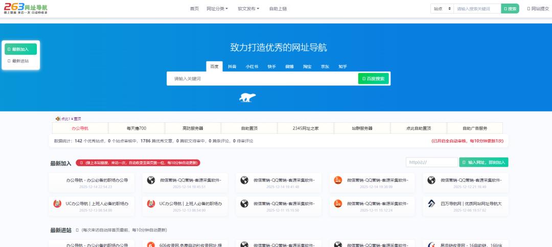 网站简介: 263网址导航是一个专业的收录网站,提供秒收录网站导航服务自动收录优质网站、文章和导航链接,帮助用户快速找到所需资源,在GOSL,您可以轻松提交您的网站或文章,享受快速收录的便利。