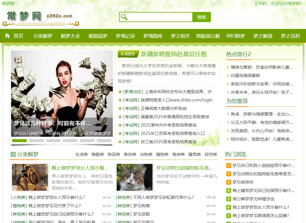 网站简介: 梦见网(www.zzrzz.com)是查询做梦、梦见、梦到蛇等种种事物并进行精确解梦的网站,提供原版周公解梦、周公解梦大全查询、梦境记录、失眠多梦、梦境问答等内容,解决您对梦的疑惑!