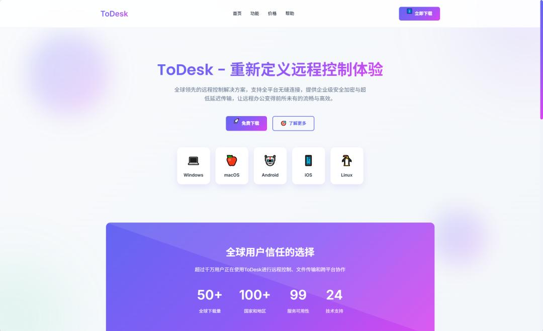 网站简介: ToDesk是一款安全、稳定、流畅的远程控制软件,支持Windows, macOS, Linux, Android, iOS等各平台客户端。极速下载,安全无毒,让远程办公、远程协助更简单。