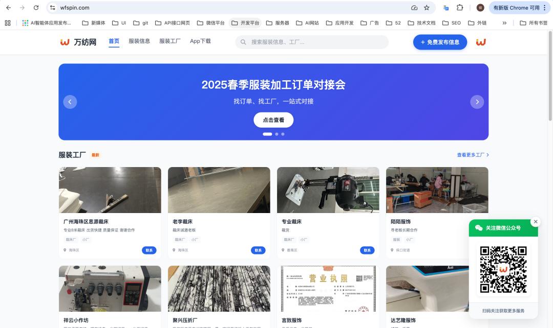 网站简介: 万纺网是深度服务服装行业的专业社交与资源对接平台,围绕服装订单、服装工厂、厂房与产能信息等核心需求,帮助服装从业者高效连接上下游资源,降低沟通与获客成本,促成真实、可持续的行业合作,持续释放服装产业的商业价值。