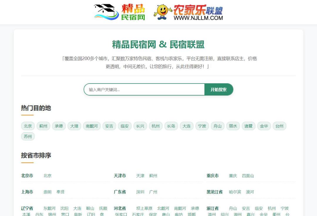 网站简介: 精品民宿网(www.zhunaqu.com)是北京盈美时代文化传媒有限公司旗下的互联网平台,成立于2016年3月1日,其前身为农家乐联盟(成立于2010年6月),专注于为旅行者提供独特住宿体验的预订服务。作为民宿旅游行业的专业服务平台,我们致力于整合和推广精品民宿资源,为广大游客提供方便、高质量的住宿选择。