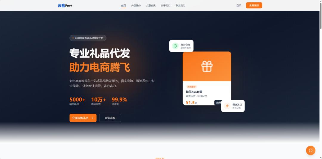 网站简介: 云仓Pro+专注礼品代发服务,提供真实物流、极速发货的一站式电商礼品代发解决方案。助力淘宝、拼多多、京东卖家提升好评率、优化DSR评分、降低运营成本,安全可靠值得信赖。