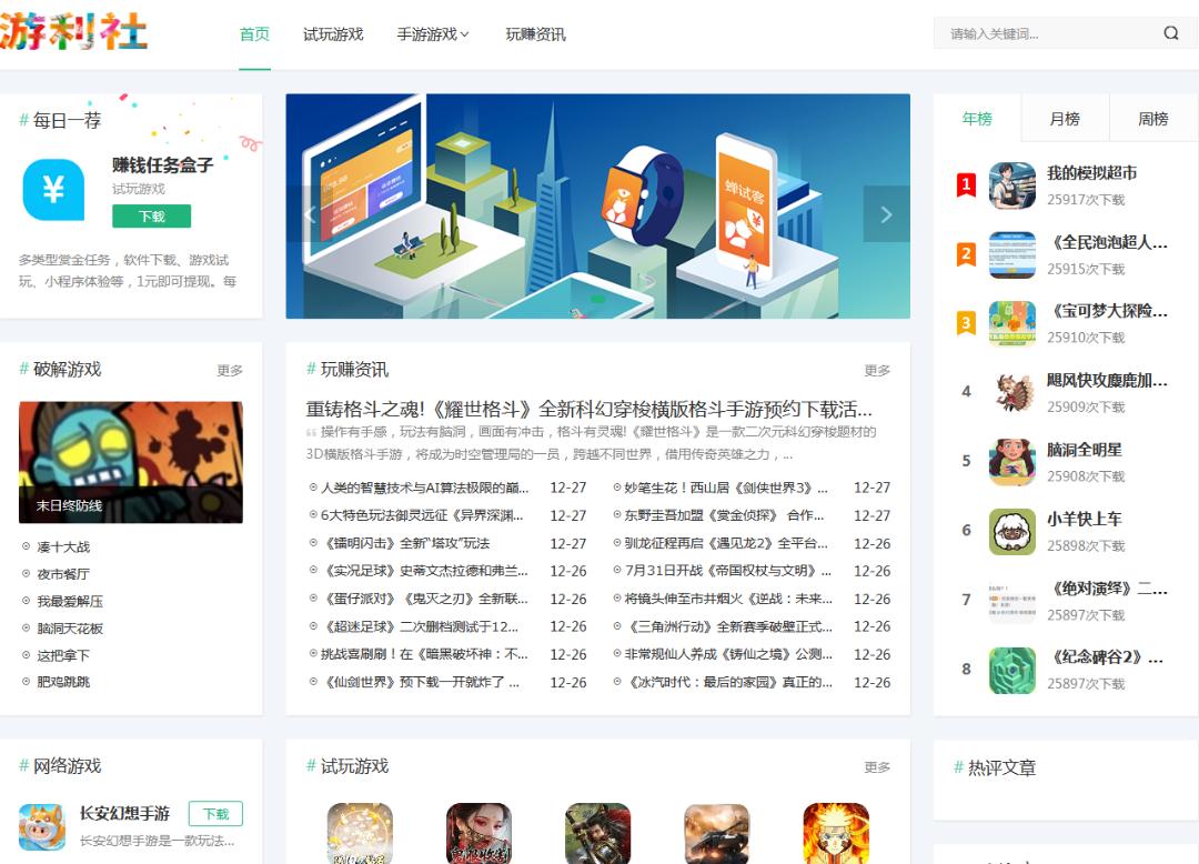 网站简介: 游利社赏金大厅是专业的游戏任务提现平台。玩家可通过试玩新游、完成游戏挑战等任务获得现金奖励。提现秒到账,安全可靠。