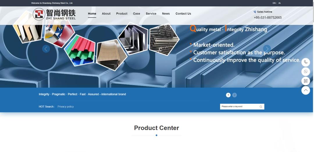 网站简介: Zhishang Steel, is a professional engaged in hot rolled steel, cold rolled steel, galvanized steel, PPGI corrugated plate, stainless steel domestic, import and export trade and customization enterprises, headquartered in the beautiful spring city - Jinan.