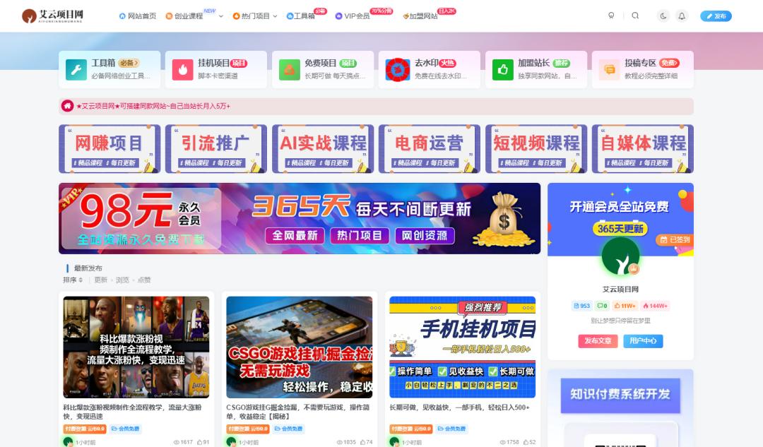 网站简介: 艾云项目网-专注分享网络创业项目落地实操课程 – 全网首发_高质量创业项目输出
